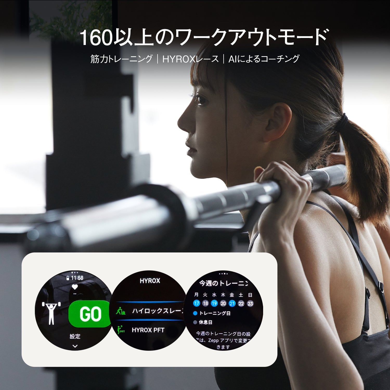 Amazfit Active 2は、160種類以上のワークアウトモードを搭載し、幅広い運動スタイルに対応しています。ランニングやサイクリング、ヨガ、水泳といった定番のアクティビティに加え、スキーやゴルフスイング、さらには犬の散歩までサポート。また、25種類の運動を自動検出する機能も搭載しており、ジムやアウトドアでのトレーニングがより効率的に行えます。これらの機能により、日々の健康管理やアクティブライフスタイルを強力にサポートします。