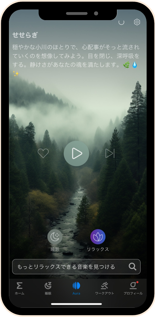 Zepp Auraは、睡眠サウンドに加えて、リラクゼーション専用のサウンドスケープを通じて、自己の内部バランスを取り戻す手助けをします。