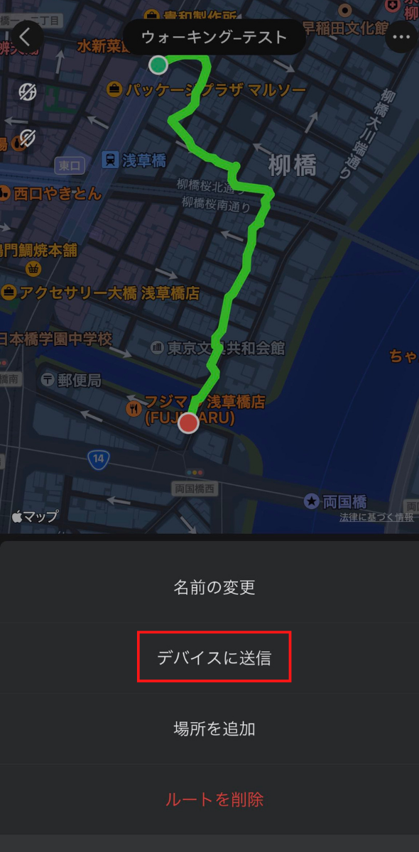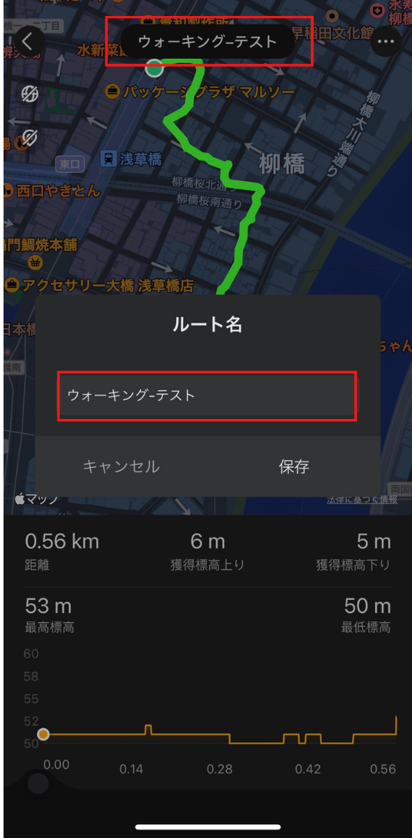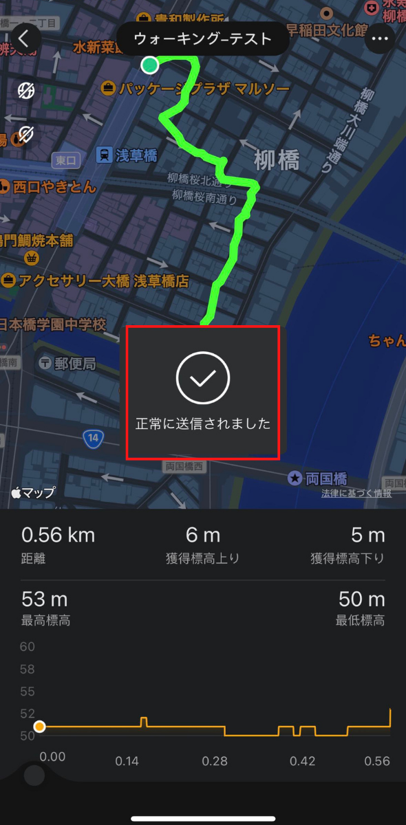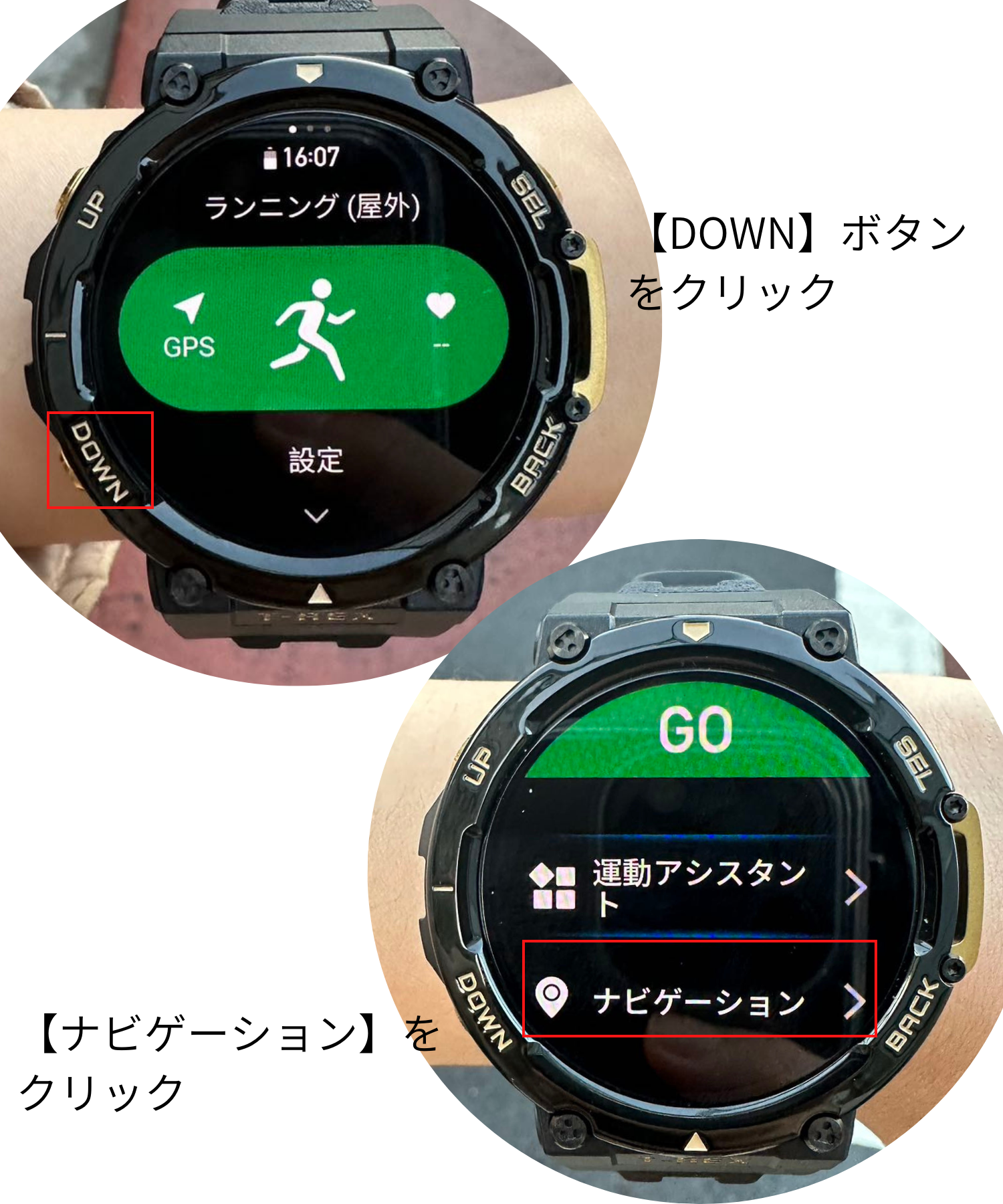 ウォッチ上に歩いたルートをリアルタイム表示します。