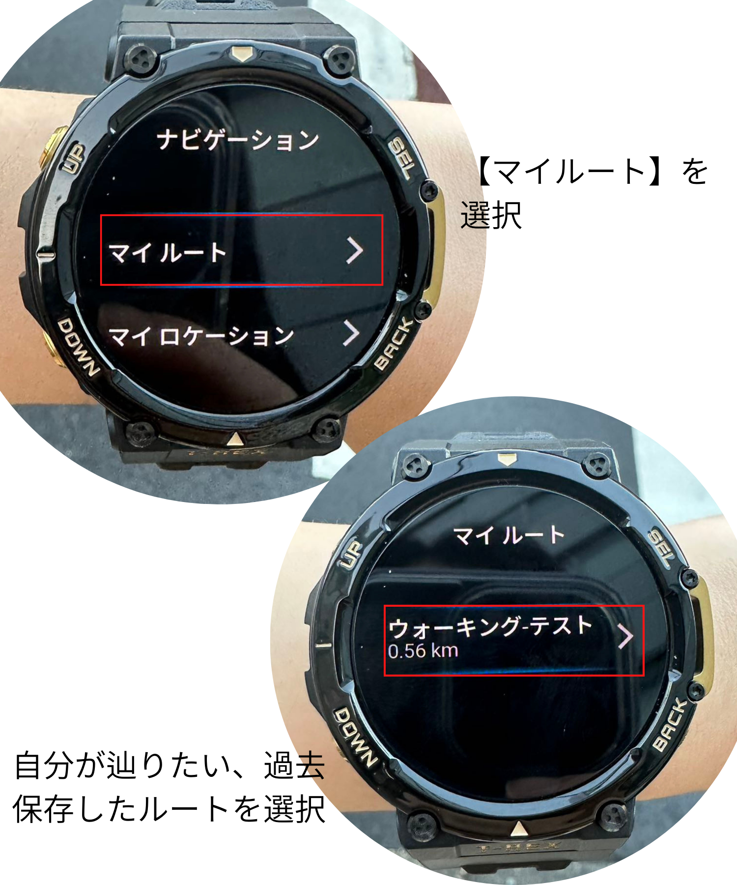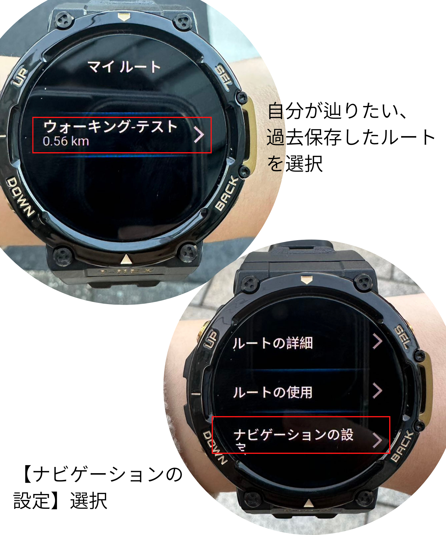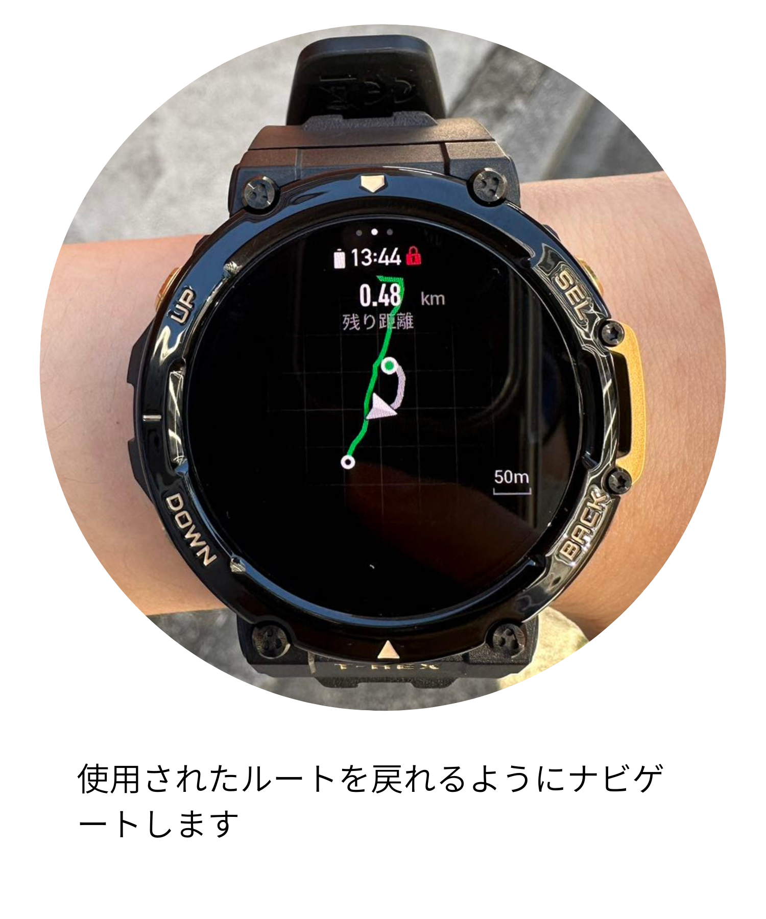 辿ってきたルートと同じ道を戻れるようにナビゲートしてくれます。