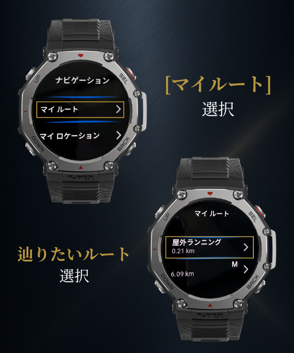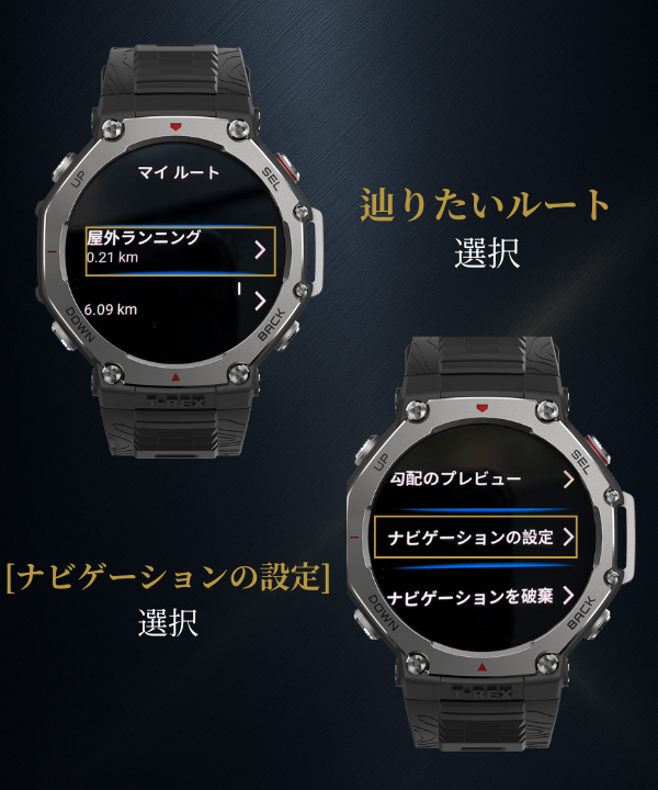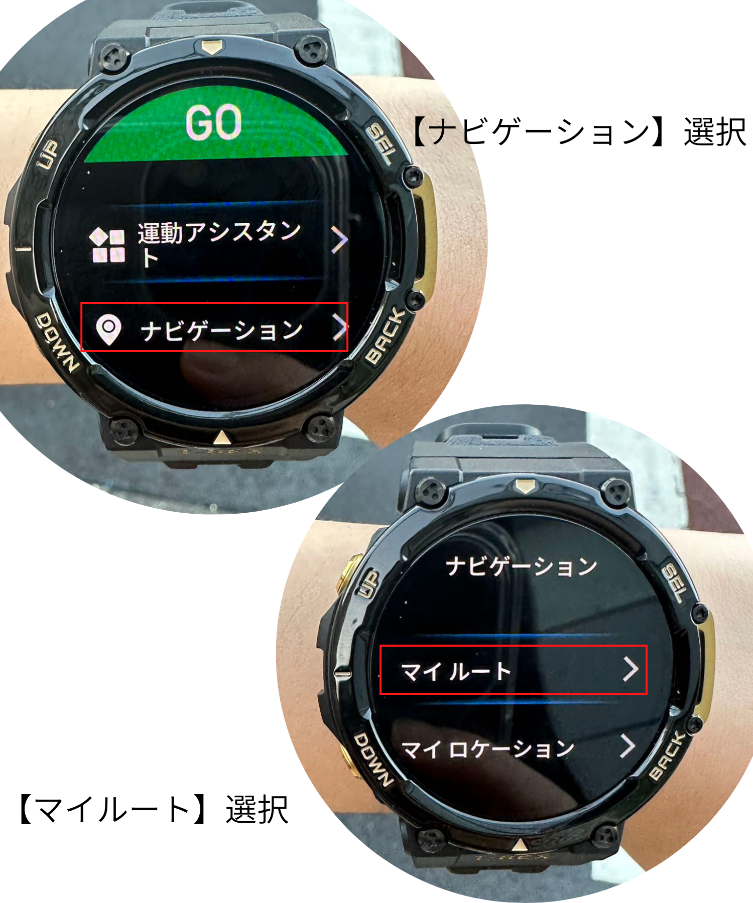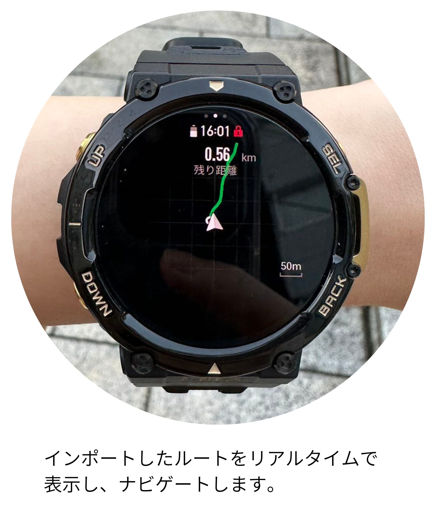 登山専用コミュニティサイト「YAMAP」や「ヤマレコ」などの外部サービスから取得したルートファイルをZeppアプリから取り込み、スマートウォッチ上に表示できます。