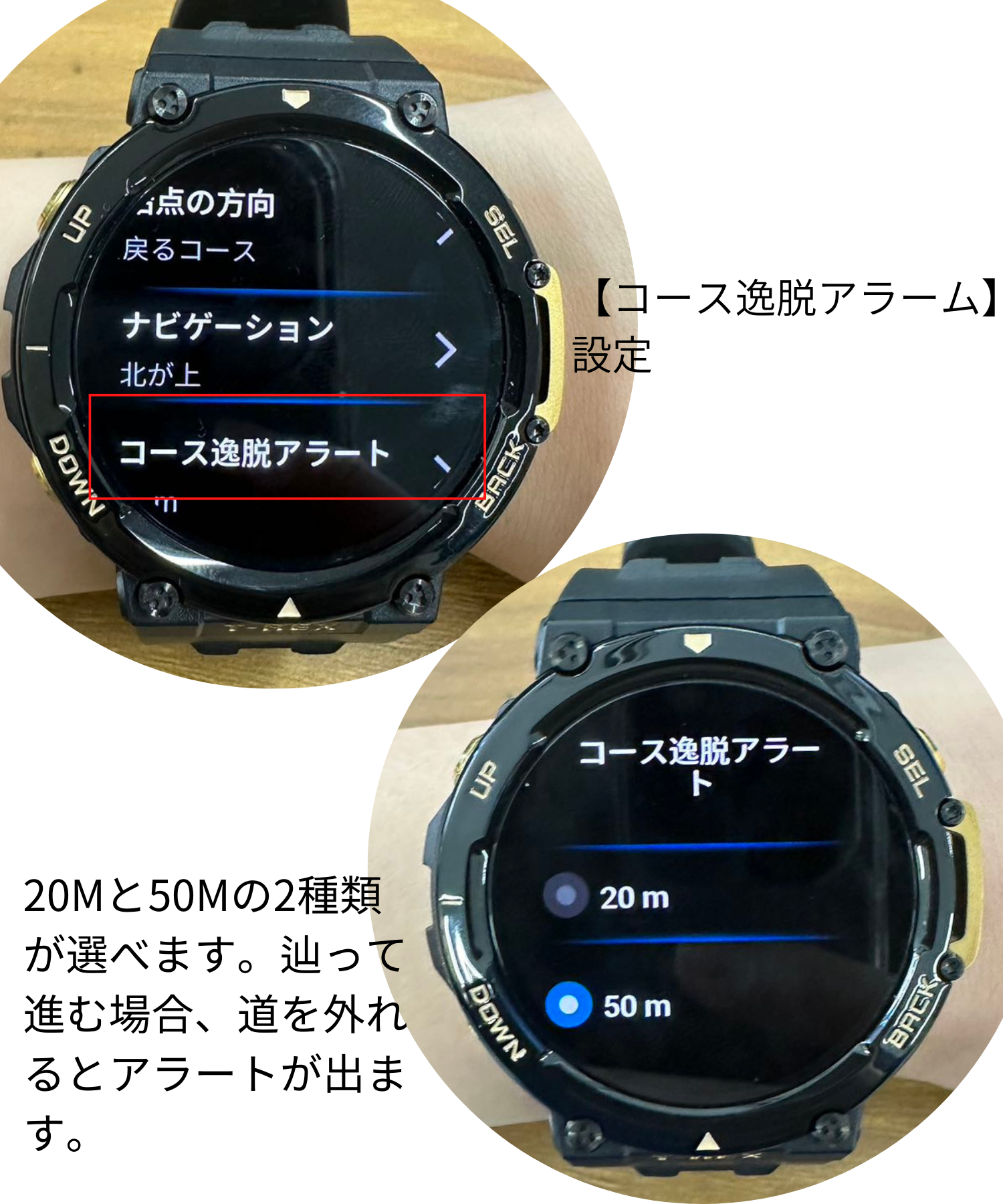 さらにインポートしたルートから外れた場合の警告機能も搭載しています。