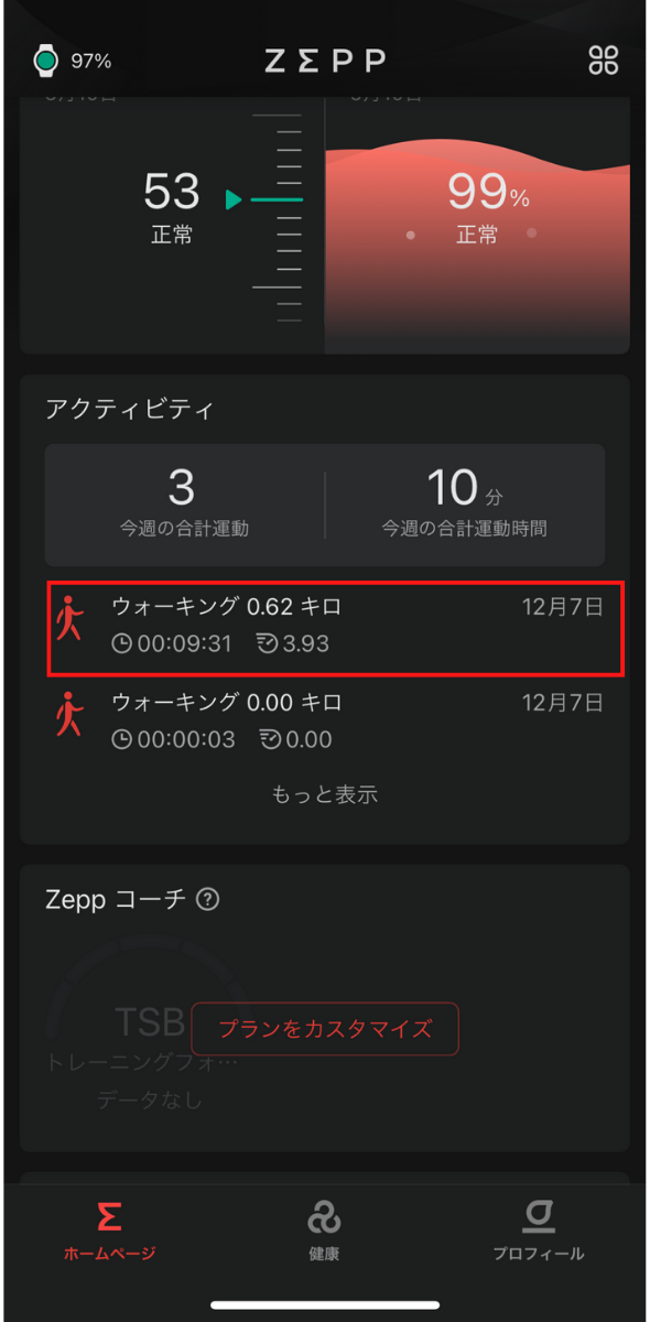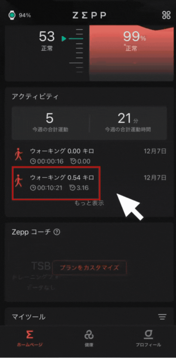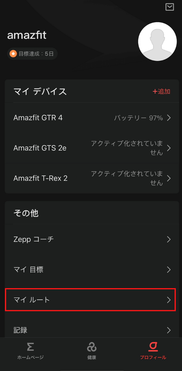 またZeppアプリに記録されている過去のワークアウトから、GPX形式でルートファイルを書き出すことが可能です。