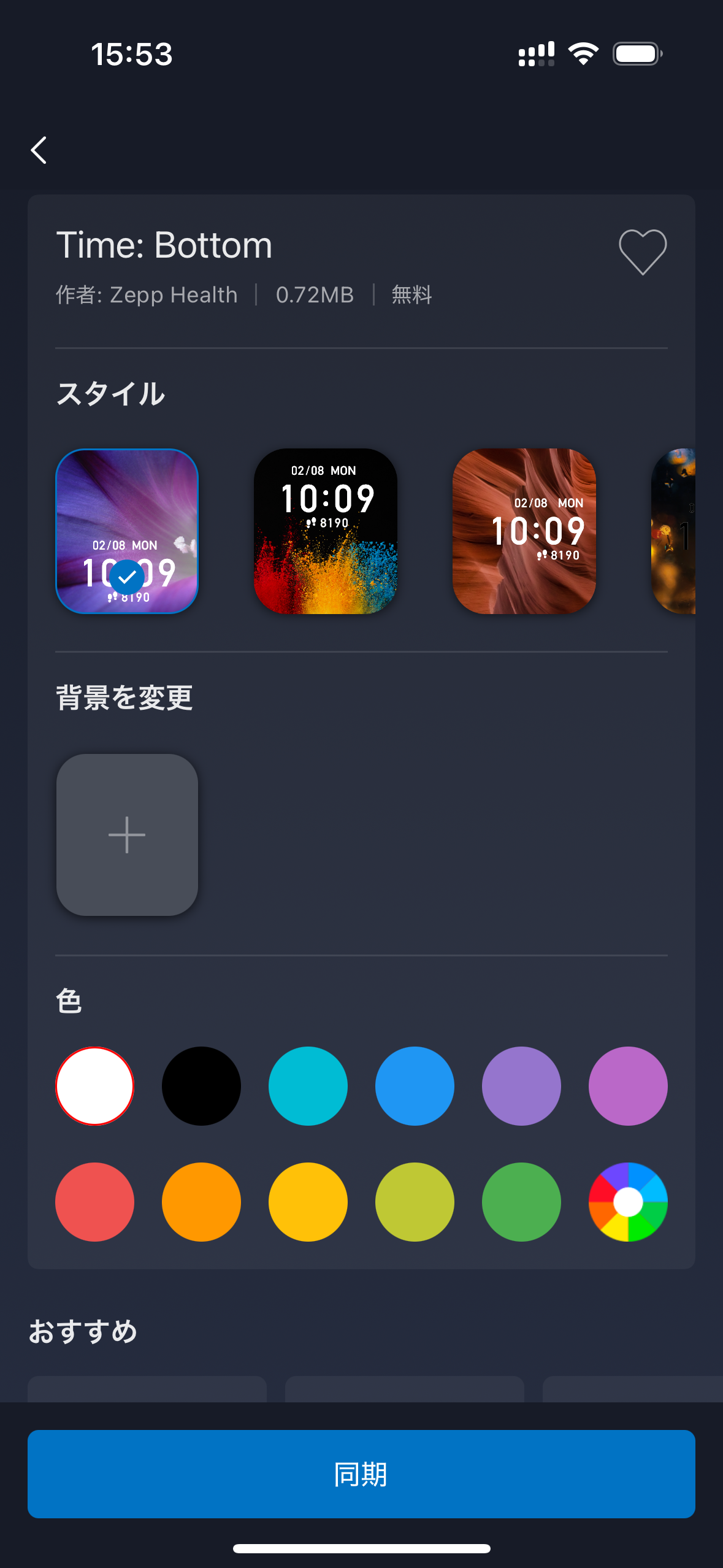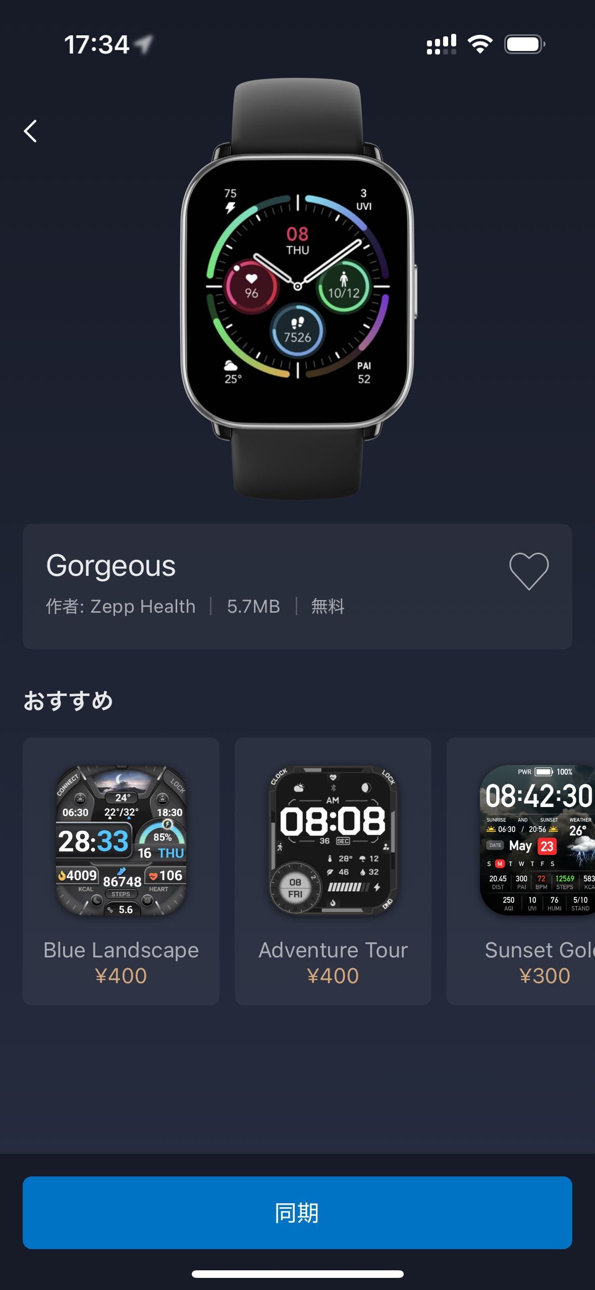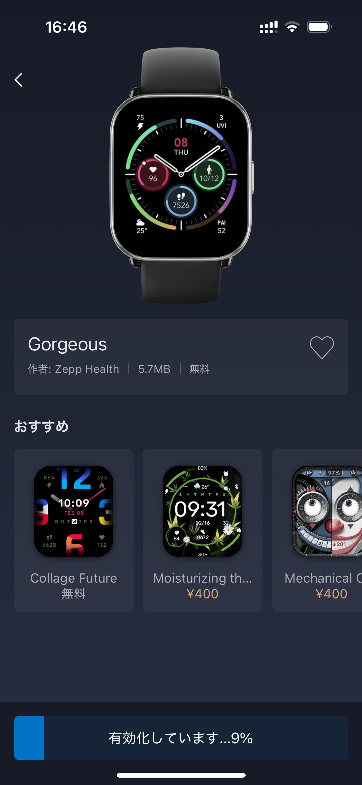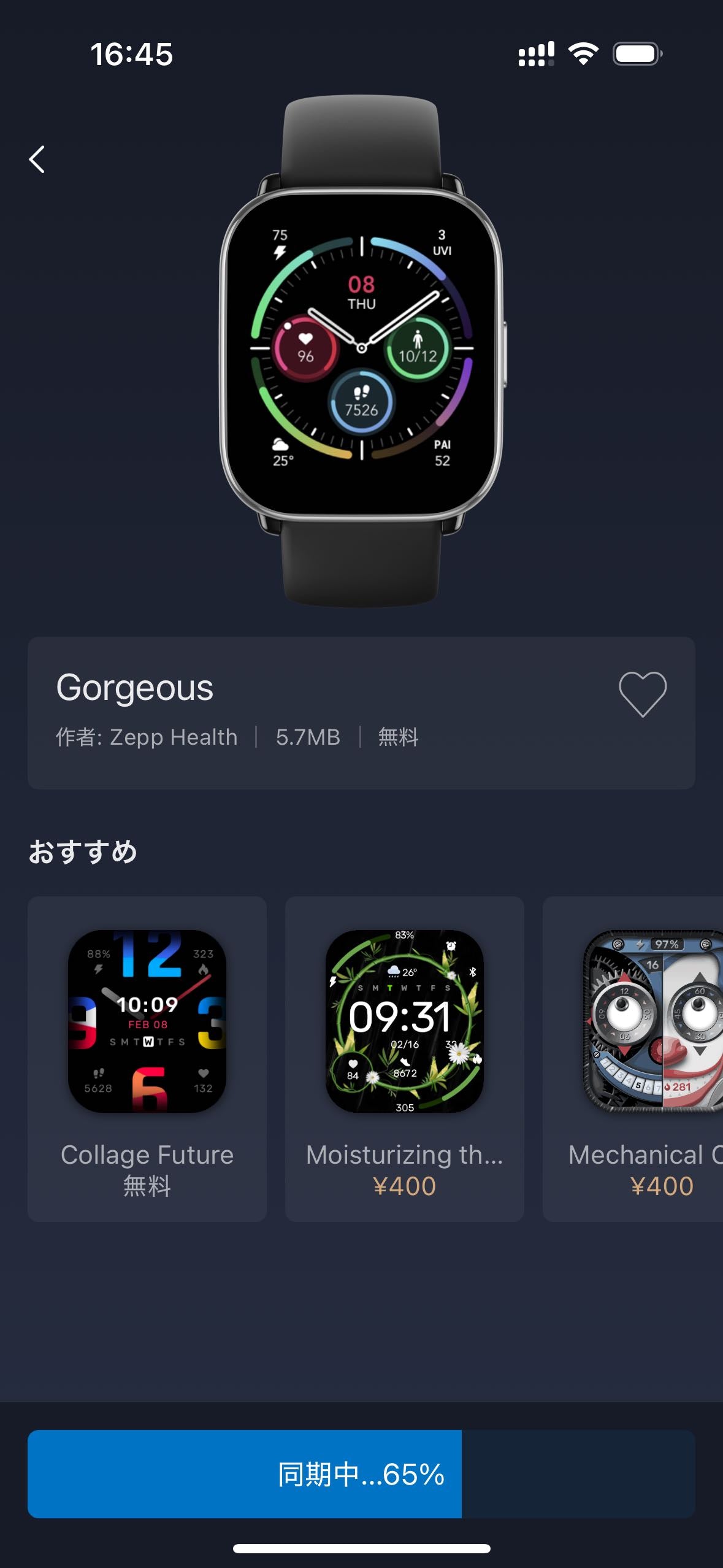 ZEPPアプリ内の文字盤ストアから設定できます。