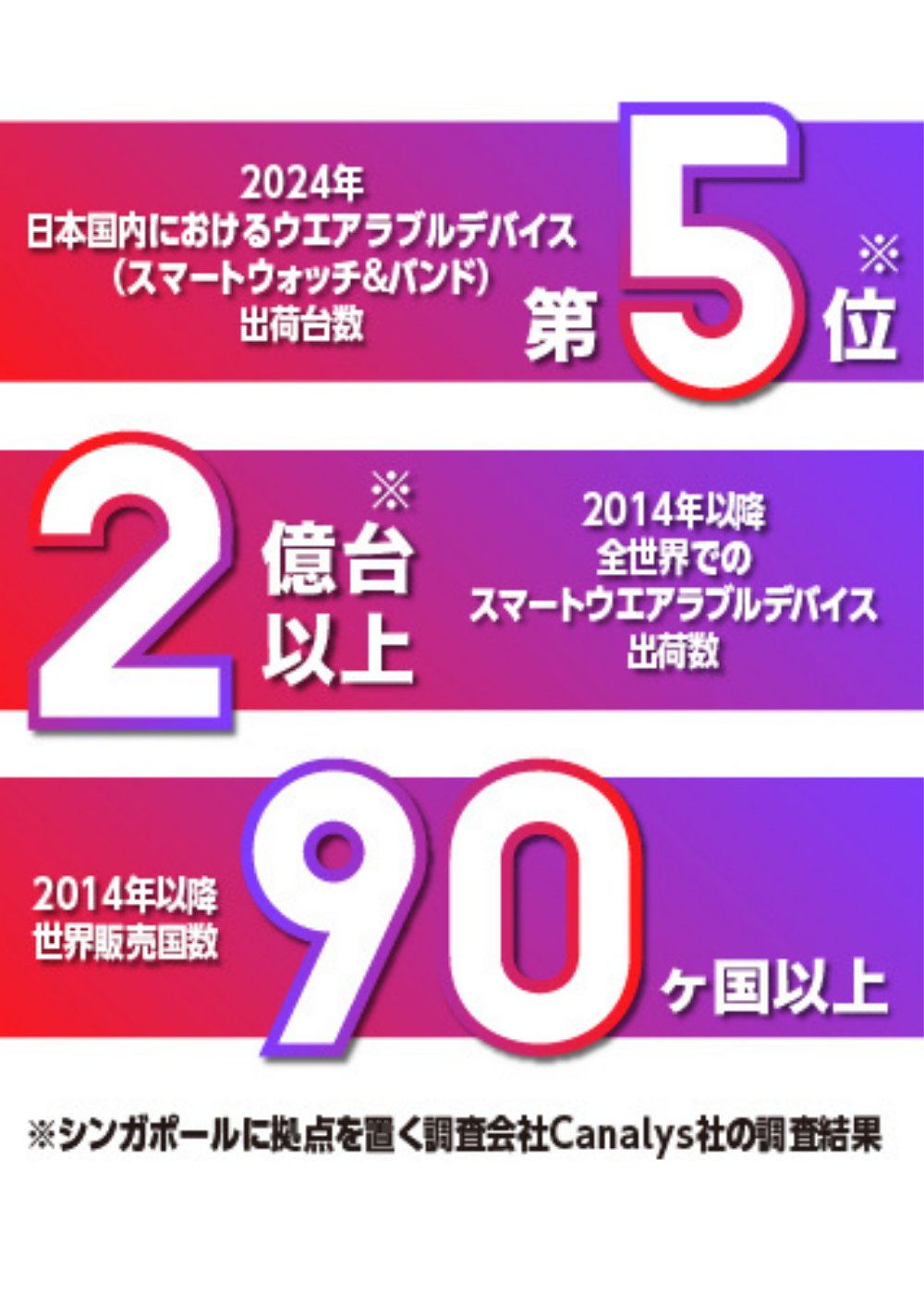 Amazfitは、90か国以上で4,200万人を超えるデイリーアクティブユーザーに選ばれているウェアラブルブランドです。