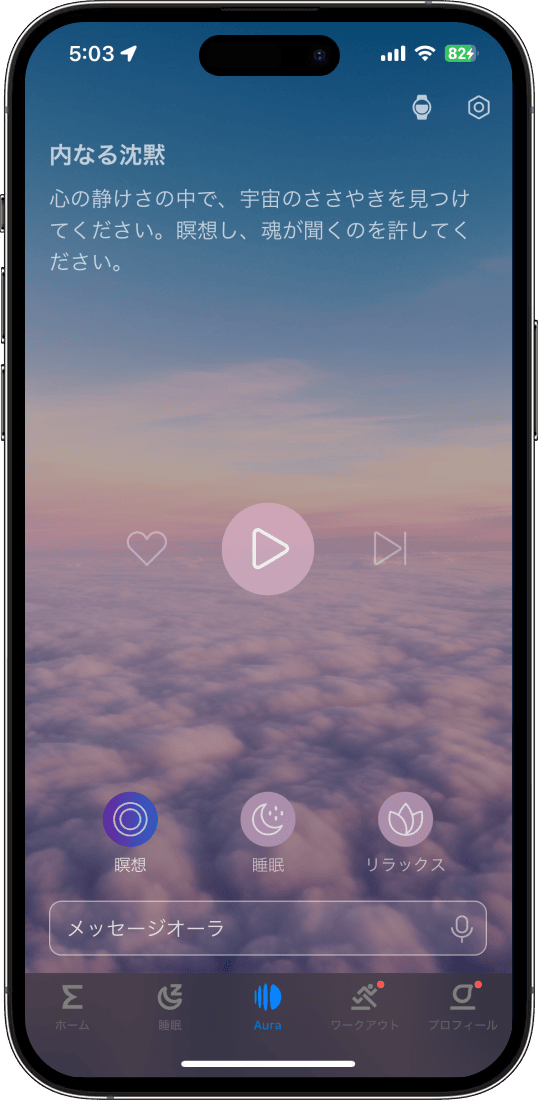 Zepp Auraは、睡眠サウンドに加えて、瞑想やリラクゼーション専用のサウンドスケープを通じて、自己の内部バランスを取り戻す手助けをします。