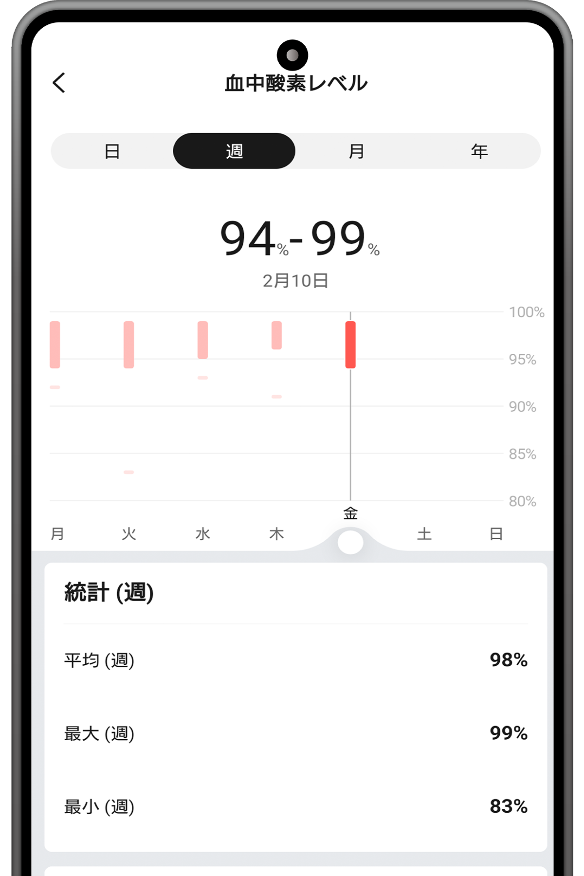 睡眠、心拍数、カロリーなど自分が見やすい順番に並べ替えが可能です。
