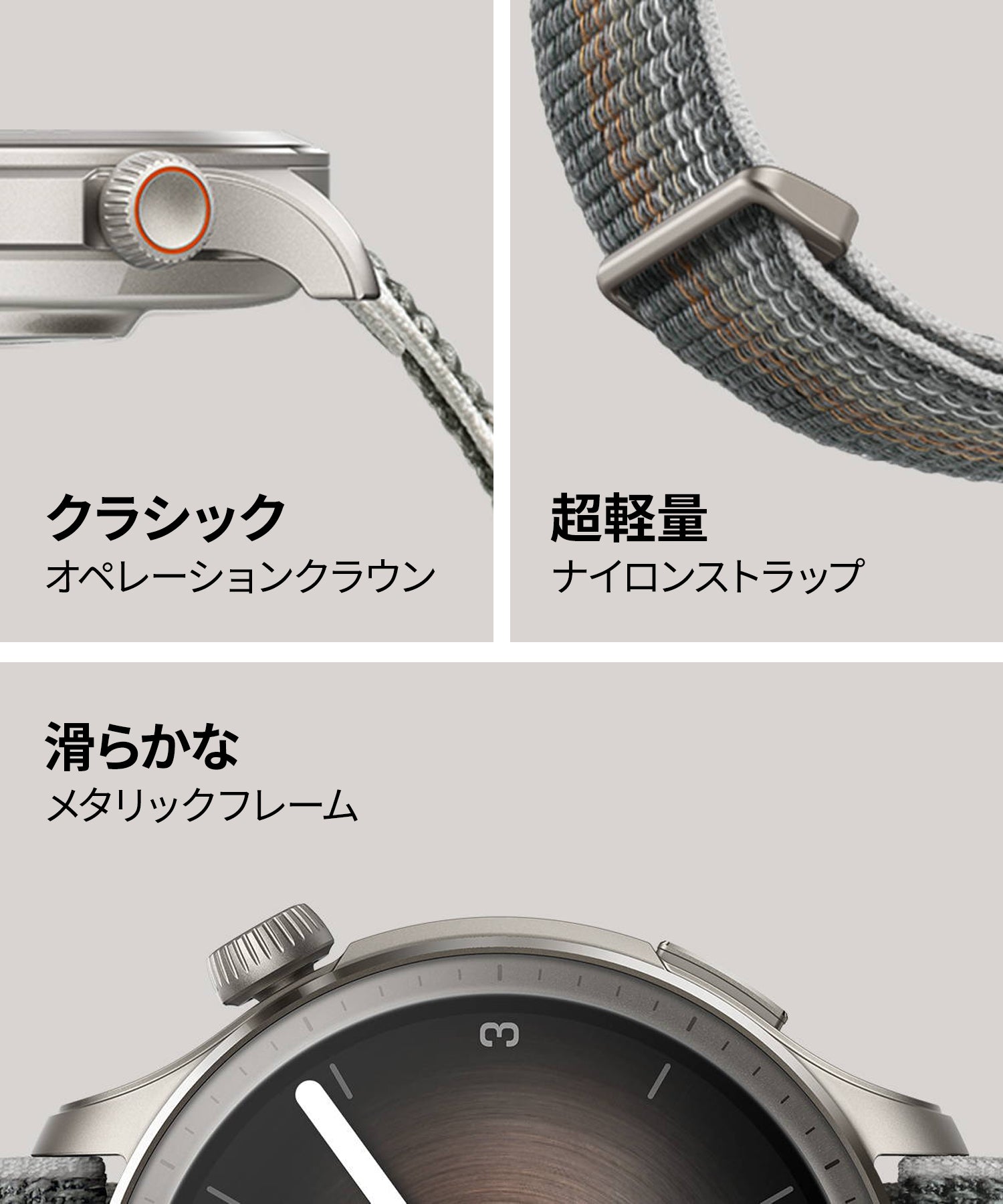 高級車のディティール。なめらかな操作性のクラウン。高い通気性のナイロンバンド。贅沢な体験は、ストレスとは無縁です。