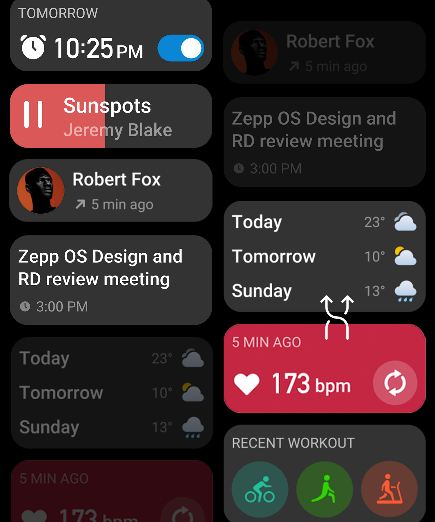 3. モーニングアップデート:Zeppアプリまたはウォッチでの設定が必要です。(天気、バッテリー、睡眠、スケジュール、PAI、月経周期追跡、前日のアクティビティに対応)