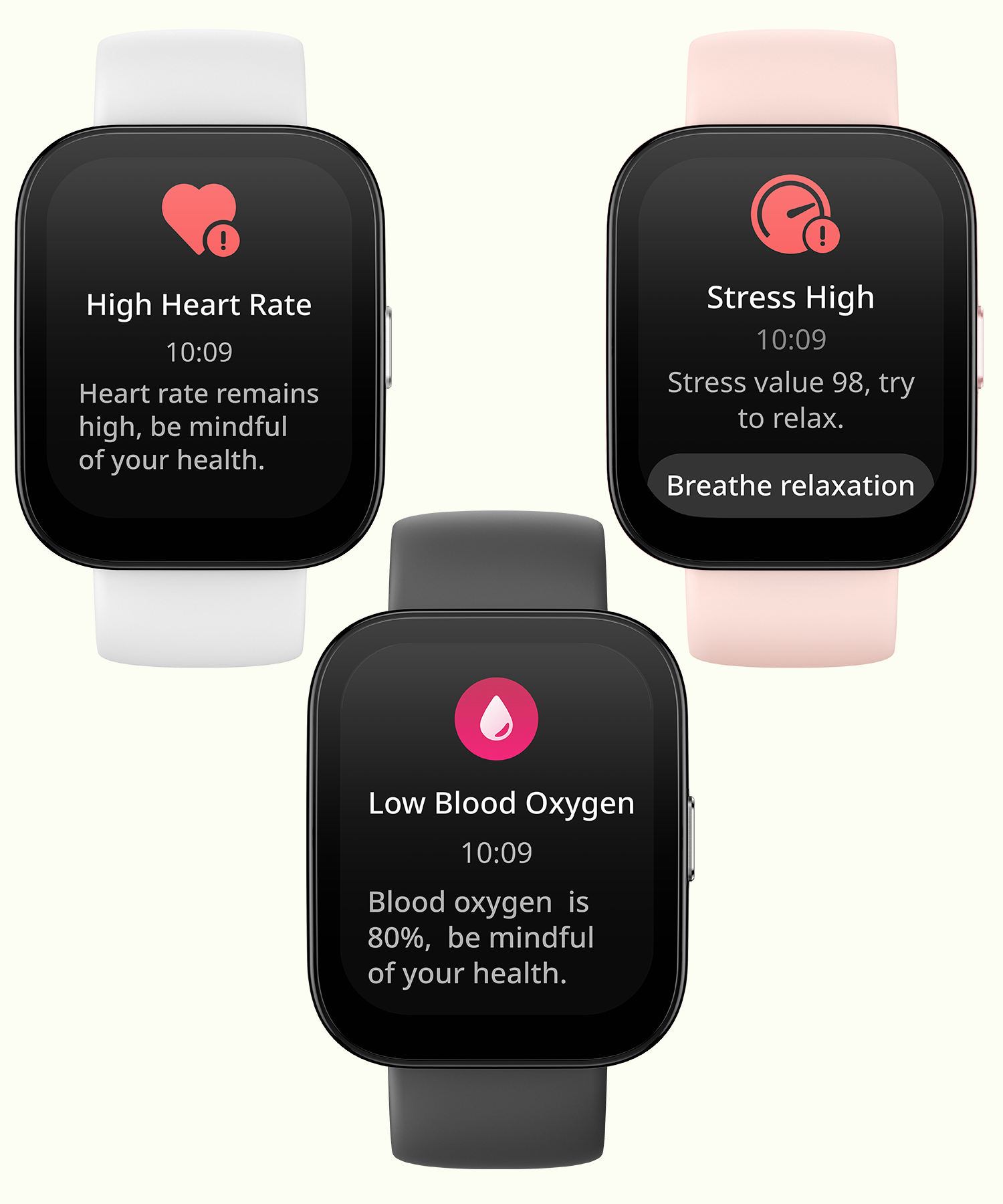 | 健康リマインダー | 心拍数の異常/低血中酸素/高ストレスレベル/呼吸エクササイズ/座り過ぎのリマインダー |