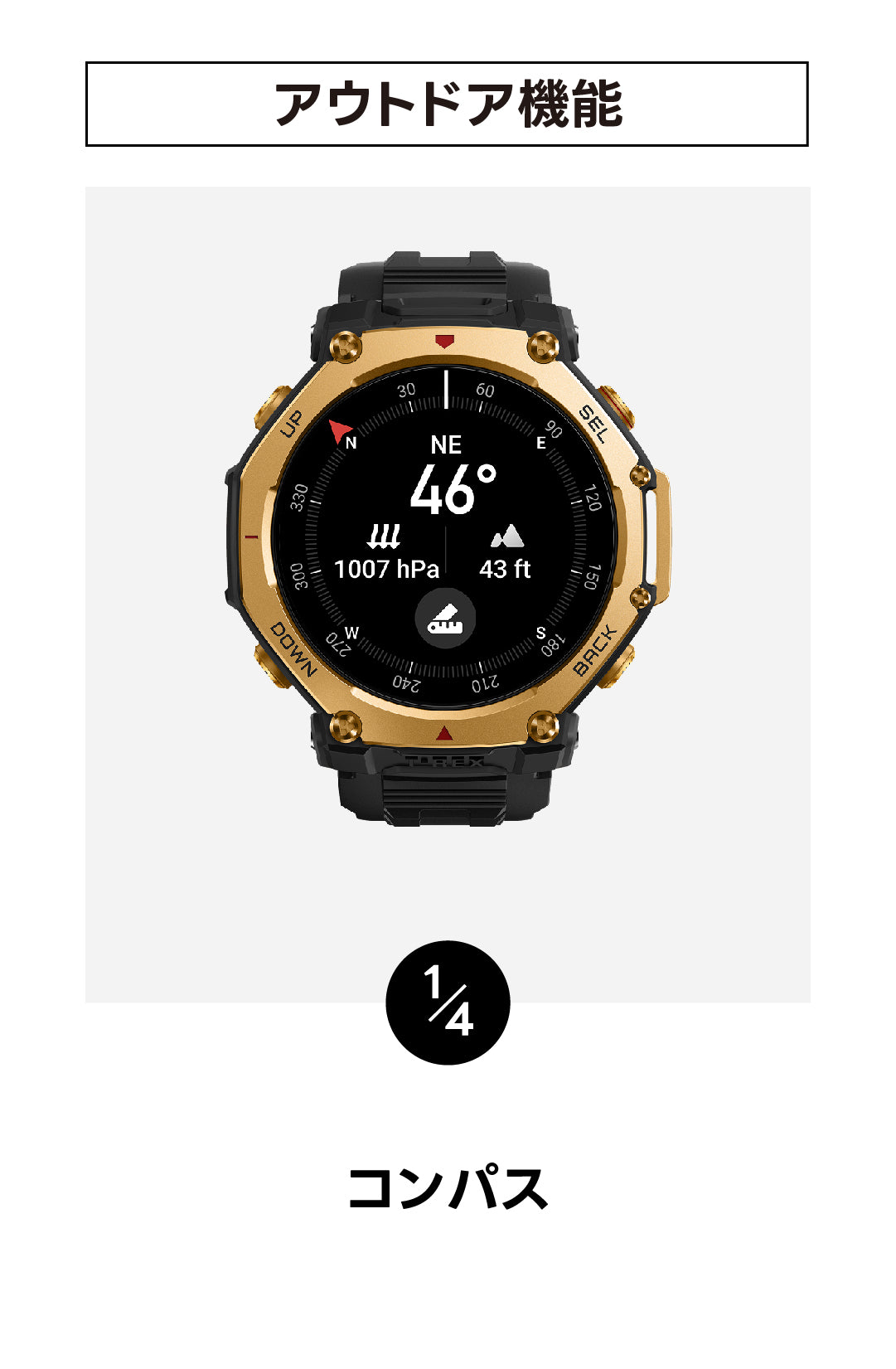 | サイズ | 約48×48×14(心拍ベース除く)(心拍ベース含むと約16mm) |