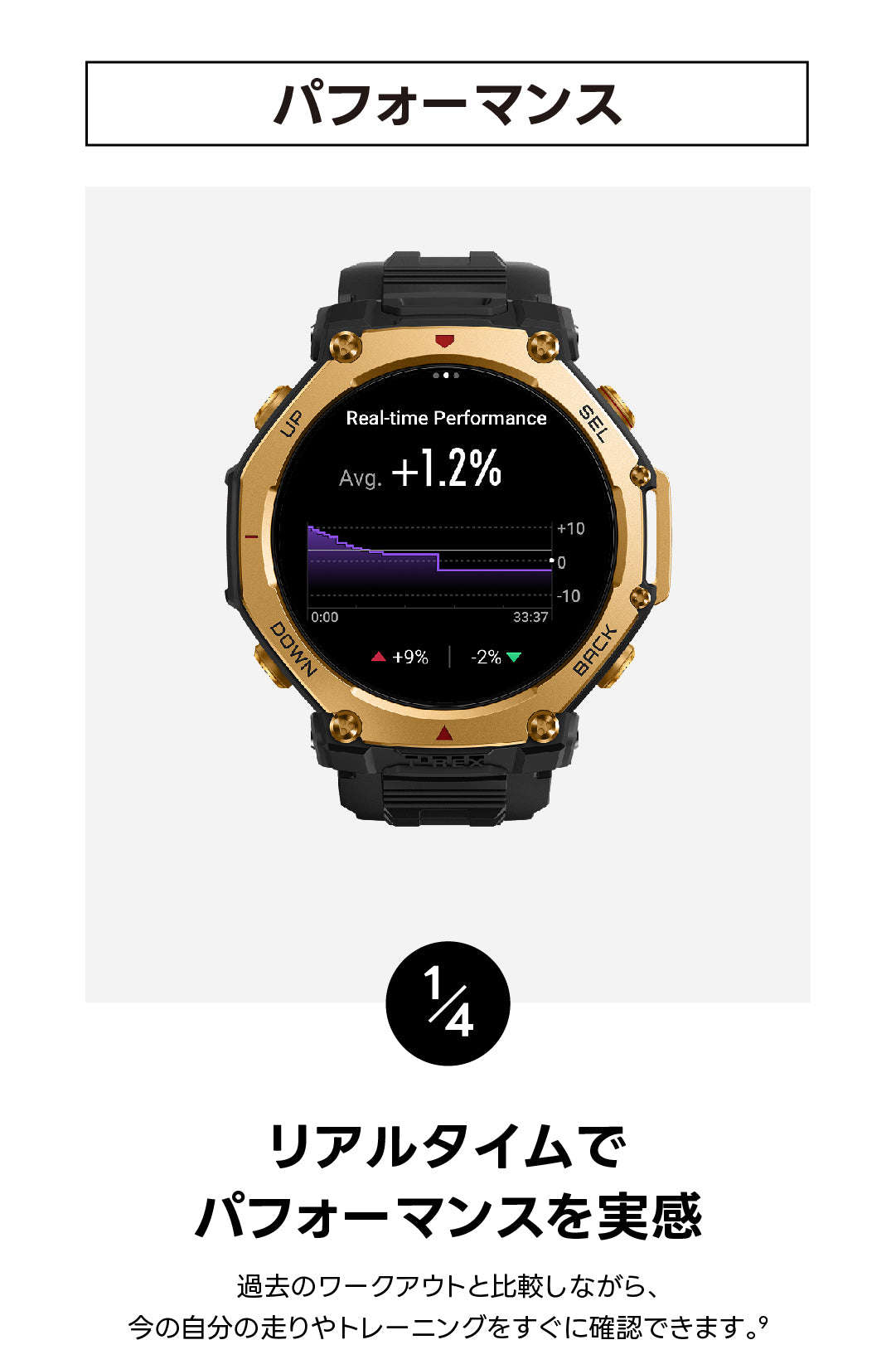 | ワークアウトステータス | PeakBeats™(VO2Max、完全回復時間、トレーニングの負荷・効果など) |