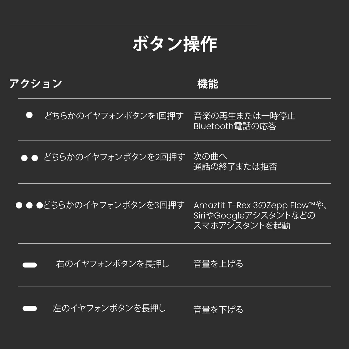 Zepp Flow™搭載のAmazfitウォッチがなくても大丈夫。イヤフォンのボタンを3回押せば、スマホの音声アシスタントを起動できます。